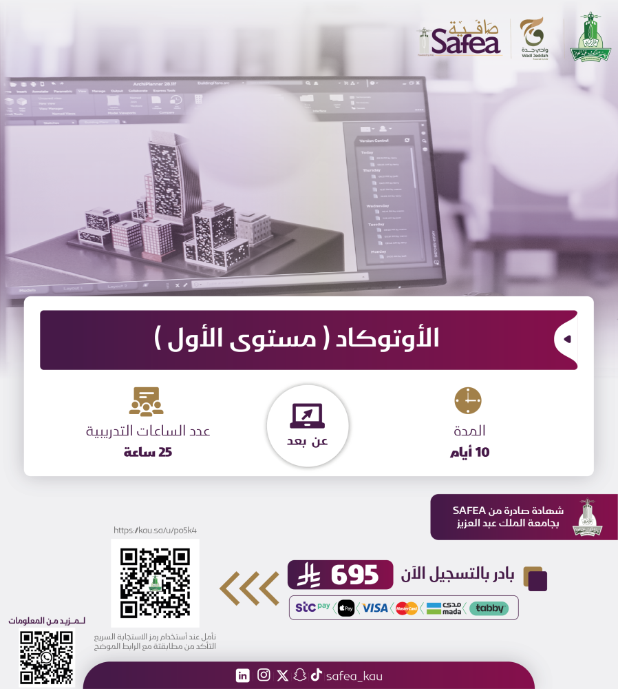 • 10 أيام – إجمالي 25 ساعة تدريبية.